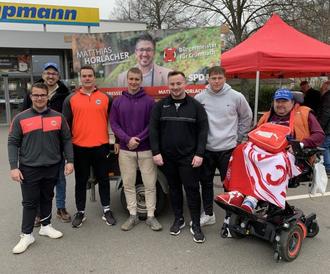 Auf dem Bild: Matthias Horlacher mit Max Baier und der Crumbacher Werfergruppe vo dem EDEKA. Vielen DANK an EDEKA Kampmann, dass die Werfergruppe fast täglich die angrenzende Betty-Heidler-Arena zum Training nutzen kann.