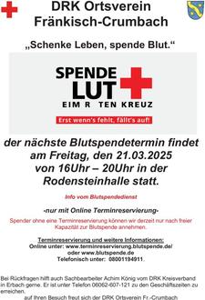 Der DRK Ortsverein Fränkisch-Crumbach freut sich auf Ihren Besuch