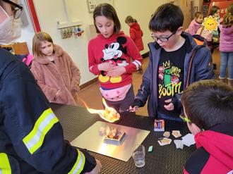 Zum Abschluss haben alle Gruppen nochmal über die einzelnen Versuche gesprochen und alle Kinder wissen nun ganz genau warum man niemals eine Kerze alleine anzünden sollte.