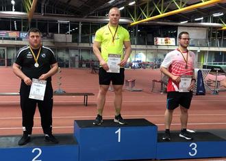 Den zweiten Titel holte sich Max Baier bei der Jugend U18 +82kg mit 12,55 Meter mit dem 7,5kg Stein wurde er Deutscher Hallen-Meister 2023, die Bronzemedaille in diesem Wettkampf ging an Tom Baumann mit Bestleistung von 10,44 Meter.