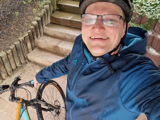 Einer der Radler war Alexander Bender, hier durchnässt vom Regenschauer