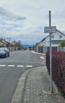 Neben zahlreichen weiteren Ausbesserungen, wurde auch die Vorfahrtsregelung in der Heimstättenstraße geändert. Zudem wurden hierzu entsprechende Hinweisschilder angebracht, um auf die neue Vorfahrtsregelung hinzuweisen.