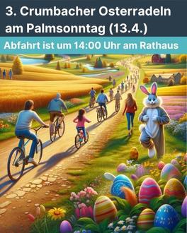Egal ob mit dem E-Bike oder Kinderfahrrad – Sie sind alle sind herzlich eingeladen, an unserer gemütlichen Oster-Fahrradtour teilzunehmen! Wir starten um 14:00 Uhr an der Gemeinde und radeln gemeinsam in Richtung Café Ripper - natürlich mit schönem Umweg, denn das wäre sonst doch ein wenig zu kurz!