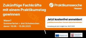 Fachkräftesicherung ist ein wichtiges Thema, und die duale Ausbildung spielt dabei eine große Rolle. Um die Jugendlichen auf ihren Übergang in das Berufsleben vorzubereiten und zum Beispiel für eine Ausbildung zu begeistern, sind Praktika vor Ort im Betrieb besser als jede Theorie. Für Unternehmen bietet sich damit die Chance, Auszubildende und Fachkräfte von morgen kennenzulernen. Betriebe und Institutionen, die auf der Suche nach Fachkräften sind und Jugendlichen die Möglichkeit eines Praktikums geben wollen, können sich ab sofort ganz unkompliziert und kostenlos unter www.praktikumswochen-hessen.de/unternehmen registrieren. Dort besteht dann die Möglichkeit, Tätigkeitsbereiche und Tage im Projektzeitraum auszuwählen.
