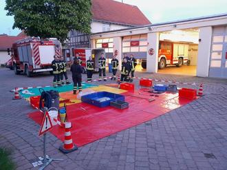 Da es für diesen Dekontaminationsplatz so manches zu beachten gibt und diese Aufgabe nicht zu den alltäglichen Arbeiten der Feuerwehr gehört, hat die Einsatzabteilung den Aufbau und den Betrieb des Dekon-Platzes in Kleingruppen trainiert. Vor allem das ordnungsgemäße Entkleiden der Einsatzkräfte muss geübt werden, da hier jeder Handgriff sitzen muss.