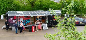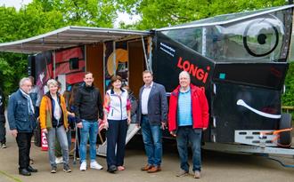 Max Schwabe, der selbst als Fahrer aktiv an dem Projekt beteiligt ist, erläuterte, dass der SolarButterfly mit über 120 Quadratmetern ultrahocheffizienter Solarzellen ausgestattet sei. Mit dem selbst produzierten Strom werde die Batterie eines elektrischen Zugfahrzeugs geladen, sodass der Schmetterling pro Tag ohne Abgase bis zu 250 Kilometer weit fahren könne.