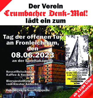 Nach der Prozession findet im Park das Fronleichnamsfest statt, das der Verein „Crumbacher Denk-Mal!“ veranstaltet.