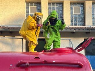 Nach einer Aufwärmrunde mussten die Trupps Leckagen abdichten, damit die auslaufenden Flüssigkeiten nicht weiter austreten können. Im Anschluss wurden von dem ausgelaufenen Flüssigkeiten Proben genommen. Diese würden im Einsatzfall zur weiteren Stoffbestimmung dienen.
