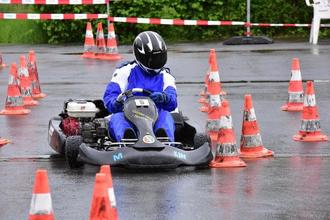 Bevor die Kinder sich erstmal ins Kart setzen dürfen, erhalten Sie eine ausgiebige Einweisung und Informationen. Auf einem mit Pylonen aufgestellten Kartslalom-Geschicklichkeitskurs sollen die Grundlagen des motorbetriebenen Kartfahrens beschnuppert werden. Die Jugend-Slalomkarts sind speziell auf die Aufgabenstellungen geschneiderte Fahrzeuge, die mit einem 5,5 PS starken Honda-Viertaktmotoren, ähnlich einem Rasenmäher, und nur mit Gas und Bremse bewegt werden können. Mit einer Sitzverstellung können größere oder kleinere Personen darin Platz finden. Es wird mit Pylonenhütchen ein Parcours aufgestellt, der möglichst fehlerfrei zu durchfahren ist. Auf der Strecke befindet sich immer nur ein Kart. Es werden sehr niedrige Geschwindigkeiten erreicht, da es rein auf die Geschicklichkeit ankommt, um den Umgang mit motorisierten Fahrzeugen zu üben.