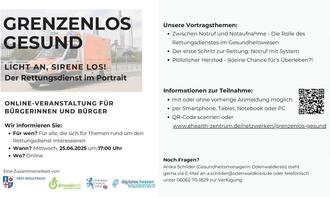 Wann und wie setze ich einen Notruf ab und wie funktioniert die grundsätzliche Versorgung im Notfall eigentlich? Welche Rolle spielt der Rettungsdienst im Gesundheitswesen? Und wie erkenne ich akute Herzprobleme bei mir oder anderen und kann so dem plötzlichen Herztod vorbeugen? Diesen und weiteren wichtigen Fragen widmet sich die im vergangenen Jahr ins Leben gerufene Reihe „Grenzenlos gesund“ mit den nächsten Online-Vorträgen am 25. Juni um 17 Uhr. Nach bereits drei erfolgreichen Veranstaltungen zu verschiedenen Themen werden dann drei Referenten unter dem Titel „Licht an, Sirene los!“ – Der Rettungsdienst im Portrait Wissenswertes erzählen.