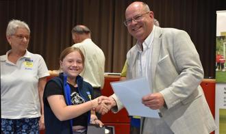 Anerkennung: Der Erste Kreisbeigeordnete Oliver Grobeis überreicht Emma Heller vom KSV Wallbach e.V. eine Goldmedaille. Sie ist eine von vielen Kindern und Jugendlichen, die bei der Sportlerehrung des Odenwaldkreises für besondere sportliche Leistungen ausgezeichnet wurden.