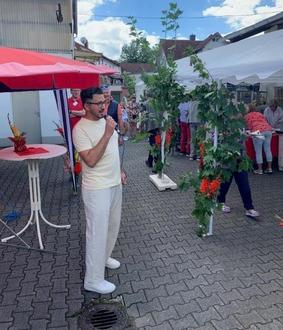 Bürgermeister Matthias Horlacher begrüßt die Gäste, Helferinnen und Helfer.