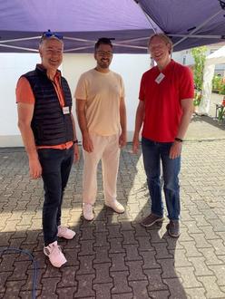 SPD-Fraktionsvorsitzender Andreas Engel, Bürgermeister Matthias Horlacher und der neue Vorsitzende des SPD-Ortsvereins Benjamin Klinger freuen sich, dass uns das Wetter nicht im Stich lässt.