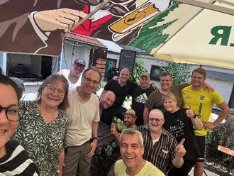 Spaß bei der Arbeit garantiert – ein Teil der Helfer-Crew beim hochverdienten kalten Getränk