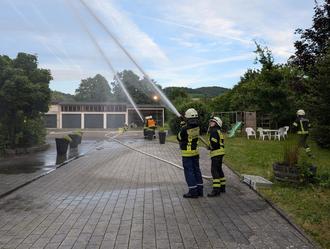 Gemeindebrandinspektor Stephan Fehr zeigte sich sehr zufrieden mit den Leistungen seiner Mannschaft und bedankte sich bei Familie Sammüller für das zur Verfügung stellen des Übungsobjektes.