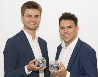 Innovativ: Hannes Specht (links) und Ilias Zempelin mit dem „Sentry Bot“