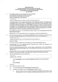Bekanntmachung Wählerverzeichnis