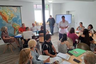 Neben dem Kurs in Breuberg gibt es mittlerweile noch einen weiteren Kurs für ukrainische Flüchtlinge, den die vhs seit Anfang Juli in Fränkisch-Crumbach anbietet und der abends in den Räumen der Dozentin und gleichzeitig des Kooperationspartner Zukunftswerkstatt – Heike Breid stattfindet.