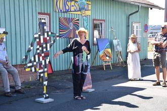 In diesem Jahr beteiligen sich 13 Ateliers aus dem Odenwaldkreis an den Tagen der offenen Ateliers. Alle waren bei dem Treffen in Breuberg vertreten - durch die Kunstschaffenden selbst beziehungsweise und / oder durch ihre Kunstwerke. „Das zeigt das große Interesse am gegenseitigen Austausch in einer lebendigen Kunstszene, die wir hier haben“, so Matiaske. In einem Rundgang stellten die Kunstschaffenden ihre Kunst vor. Dabei wurden nicht zuletzt die vielfältigen Materialen sichtbar, die zum Einsatz kommen.