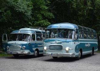 Startklar: In Oldtimerbussen wie diesen finden auch in diesem Jahr wieder besondere Fahrten zu den teilnehmenden Museen statt.