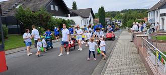 Am Sonntag, den 13.08.2023 fand in Fränkisch-Crumbach der Kerbumzug statt. Erstmals lief der Kindergartenförderverein als Laufgruppe beim Umzug mit und präsentierte sich mit guter Laune, neuen T-Shirts und kleinen Gutsje-Werfer-Helfern in Bollerwägen.