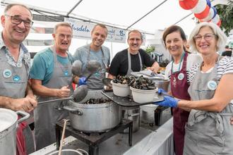 Ein Genuss für viele Crumbacher Muschelfest-Gäste: die fangfrischen Miesmuscheln aus der Bucht von Mont-Saint-Michel, zubereitet von den Crumbachern Muschelköchen nach original bretonischem Rezept. Perfekt dazu der französische Weißwein „Muscadet Sur Lie“.