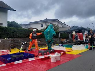 Anlässlich des Kreisfeuerwehrtages in Reichelsheim sind wir als Teil des Gefahrgutzuges Gersprenztal mit unserem Dekontaminationsplatz zur Aktionsmeile gefahren und haben einen Teil zur Ausstellung beigetragen.