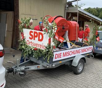Seitdem es den Kerbumzug in Fränkisch-Crumbach gibt, ist der SPD-Ortsverein immer wieder gerne mit einem Mottowagen dabei. Erst findet 2-3 Monate vor der Kerb das Treffen zur Mottofindung statt, dann 2 Wochen vor der Kerb die Vorbereitung des Wagens, am Tag vor der Kerb die letzten Verschönerungen und als krönender Abschluss der Umzug selbst.