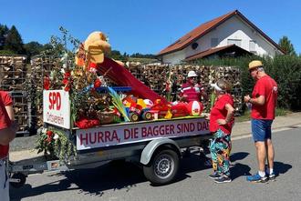 Die gute Stimmung neben dem Wagen, der wieder von Jörg Dinkel durch die Crumbacher Kerbstraßen gesteuert wurde, gute Stimmung auf der Strecke – für die SPD war es wieder eine tolle Veranstaltung.