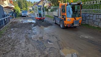 Die Mitarbeiter des Bauhofs haben noch Tage nach dem Ereignis, neben dem Tagesgeschäft, Rückstände von Steinen, Schotter und Erde von Hangabgängen beseitigt.