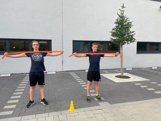 Hierbei lernten die Trainierenden, dass man auch mit einfachen Mitteln ein sehr umfassendes Training durchführen kann. Das Gummiband wurde anfangs von vielen belächelt und stellte sich als eine der anstrengendsten Stationen dar.