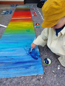 Mit Farbe und Freude am Werk in Etzen-Gesäß nach dem Motto: „Kinder machen das Leben bunter“, halfen junge Dorfbewohnerinnen und Dorfbewohner am diesjährigen Freiwilligentag, die Bushaltestelle am Kindergarten neu zu streichen und mit einer bemalten Holzplatte zu verschönern. Die engagierten Erwachsenen pflegten den Eingangsbereich vor dem Dorfgemeinschaftshaus oder halfen beim Streichen der Haltestelle.