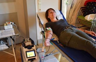 77 Mitarbeitende der Kreisverwaltung spendeten bei der Aktion im Landratsamt, die mit dem Blutspendedienst des Deutschen Roten Kreuzes organisiert worden war, Blut. Mit dabei war auch Yvonne Lampert vom Personalamt.