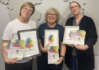 (v.l.n.r.): Herta Walter (Inhaberin Café Midde Noi), Maria Eigl (Dozentin vhs Odenwaldkreis) und Simone Philipp (Bildungsmanagerin vhs Odenwaldkreis) freuen sich auf zahlreiche Teilnehmende an der Veranstaltung „Colourful Art Friday – Ein Nachmittag voller Aquarellfarben“ am 10. Oktober. Foto: Volkshochschule Odenwaldkreis