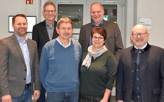 Mehr als drei Jahrzehnte in der Bauaufsicht tätig: Willi Petersik (Mitte). Gemeinsam mit seiner Frau Sonja ist er zur Verabschiedungsfeier gekommen. Ihren Dank für die lange und sehr gute Zusammenarbeit brachten (von rechts) Landrat Frank Matiaske, Abteilungsleiter Martin Müller, Personalamtsleiter Manfred Kaufmann und Verwaltungsleiter Oliver Kumpf zum Ausdruck.