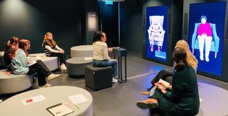 Unser Bild zeigt Schülerinnen der GAZ während des interaktiven Zeitzeugengesprächs im Technikraum des Exilarchivs.