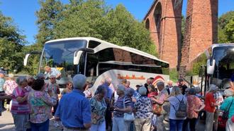 Fast 100 Teilnehmer, einschließlich Helfer der Gemeinde und des örtlichen DRK, saßen pünktlich am Freitag, den 15.09.2023 um 13.00 Uhr in zwei Bussen vor dem Rathaus. Rollstuhl und Rollatoren waren sicher verstaut. Die älteste Reiseteilnehmerin war Kätha Juras. Nach einer kurzen Begrüßung von Bürgermeister Mathias Horlacher ging die Reise los. Geplant war der Ausflug wieder vom Seniorenbeirat. Irmgard Merita und Karl Scholl hatten sich bestens über den Reiseweg und seine historischen Gegebenheiten vorbereitet und übernahmen in den beiden Bussen die Reiseleitung.
