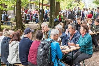 Der Abschluss der Wanderung ist im Hofgut Rodenstein, direkt unterhalb der Rodensteiner Sagenburg. Dort warten auf die Wanderer zünftige Musik (12 bis 15 Uhr) von der Trachtenkapelle Michelstadt, reichhaltige Verpflegung, Limo, Wasser, feine Weine, kühle Biere sowie Kaffee und Kuchen. Für die Bildungsbeflissenen bietet der „Pfad der Sagen“ mit bebilderten Tafeln und QR-Code für den Audio Guide einen unterhaltsamen Einblick in die Rodensteiner Sagenwelt. Alles kann einfach über das Smartphone aktiviert werden. Zum frohen Ausklang des Wandertages lohnt noch ein Besuch in einem der Crumbacher Gasthöfe.