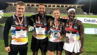 Blois/Loire: Bei den Französischen Team-Meisterschaften holt sich der Fränkisch-Crumbacher Max Baier im Trikot von Pays de Colmar Athlétisme den Französischen Meistertitel im Hammerwurf Mix-Team. Zusammen mit Candyce Bonjean, Aisata Peters und Valentin Yomba stand er am vergangenen Samstag in Blois an der Loire ganz oben auf dem Podest.
