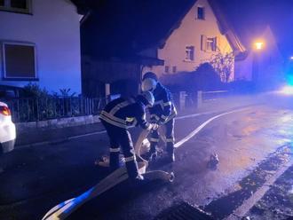 Zeitgleich zur Menschenrettung unter Atemschutz baute die Mannschaft des Löschgruppenfahrzeuges die Wasserversorgung für das StLF 20/25 auf und stellte eine Anleiterbereitschaft her.