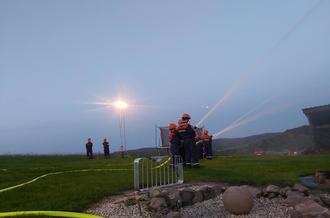 Als würden sie nichts anderes machen, bauten unsere Jugendlichen den Löschangriff auf und begannen mit dem Außenangriff. Zeitgleich wurde das Stativ zum Ausleuchten aufgebaut und die Einsatzstelle wurde ausgeleuchtet.