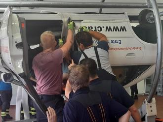 Bevor es daran ging das Retten zu üben, durfte jeder einmal bei einem Überschlag mitten drin sein um die Einwirkungen auf den eigenen Körper zu erleben und zu erfahren, wie unangenehm es ist kopfüber im Sicherheitsgurt zu hängen.