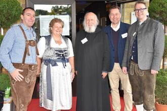 Über einen gelungenen Chancen-Markt freuen sich (v.l.n.r.): Torsten Beilstein (Abteilungsleiter Eingliederung KJC), Sandra Schnellbacher (Hauptabteilungsleiterin Arbeit und Soziale Sicherung Kreisverwaltung), Gastredner Pater Anselm Grün, Michael Vetter (Kreisbeigeordneter für Arbeit und Soziale Sicherung) sowie Siegfried Eberle (Geschäftsführer InA gGmbH). Foto: Jana Brendel, Kreisverwaltung