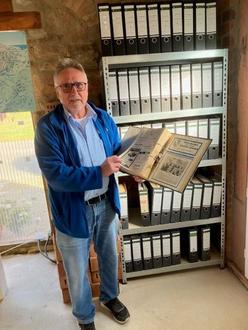 Unser Bild zeigt den 1. Vorsitzenden Werner Grimm mit der Erstausgabe und den gesammelten Crumbacher Nachrichten