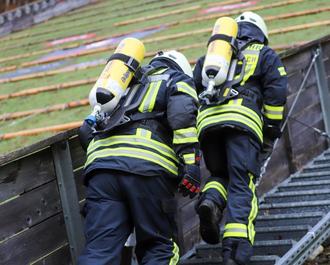Am 19. Oktober wurde die Skiflugschanze in Oberstdorf etwas anders genutzt als im Normalbetrieb. Einsatzkräfte von Feuerwehr und THW kamen von Nah und Fern um die 162 Höhenmeter in über 1.000 Stufen hinaufzugehen. Und das in Atemschutzausrüstung!