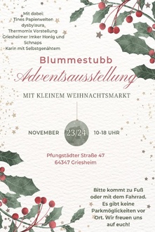 Sonntag 24.11.2024 Abfahrt 10 Uhr mit privaten PKW nach Griesheim, zur „Blummestubb“ zu Katharina Hammann.