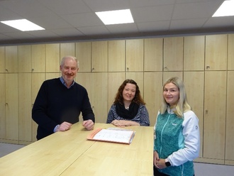 in unserer Gemeindeverwaltung gibt es neue junge Gesichter. Teresa Helm (rechts im Bild) verwaltet die kommunalen Leistungen für Kinder und Jugendliche - von der Kindertagesstätte über die Ganztagsbetreuung bis zur Jugendpflege - und kümmert sich um die Öffentlichkeitsarbeit. Das Amtsblatt "Fränkisch-Crumbacher Nachrichten", die Jahresbroschüre "Lebendiges Crumbach" und die Online-Inhalte laufen unter ihrer Regie. Tara Jöckel (Bildmitte) hat die Personalverwaltung übernommen und unterstützt darüber hinaus die Haushaltsplanung und das Rechnungswesen. Die beiden ersetzen ehemalige Kräfte, die in ihre Heimatgemeinde gewechselt sind oder ein Studium aufgenommen haben. Von daher ist auch in unserem Rathaus die Suche nach fähigen Nachwuchskräften eine immer mal wiederkehrende Aufgabe. Eine erfreuliche Beständigkeit konnte ich hingegen in unserer Finanzverwaltung würdigen. Andreas Maul, verantwortlich für unsere Gemeindekasse, beging gerade sein 40-jähriges Dienstjubiläum in der öffentlichen Verwaltung und nahm vom Gemeindeverstand eine Urkunde im Empfang, zum Dank und als Anerkennung für jahrzehntelange kompetente und verlässliche Arbeit.