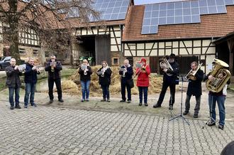 Am 1. Januar 2023 ziehen die Bläserinnen und Bläser durch die Fränkisch Crumbacher Straßen.