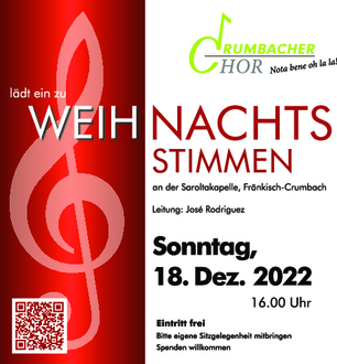 Am Sonntag, 18.12., 4. Advent, lädt der Crumbacher-Chor ganz herzlich ein zu seinem weihnachtlichen Open Air-Singen unter Leitung von José Rodriguez.