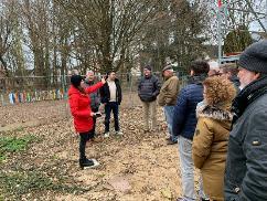 Nächster Treffpunkt war der Crumbacher Kindergarten! Hier erläuterte Tabea Worch vom Leitungsteam den derzeitigen Stand des Erweiterungsbaues.